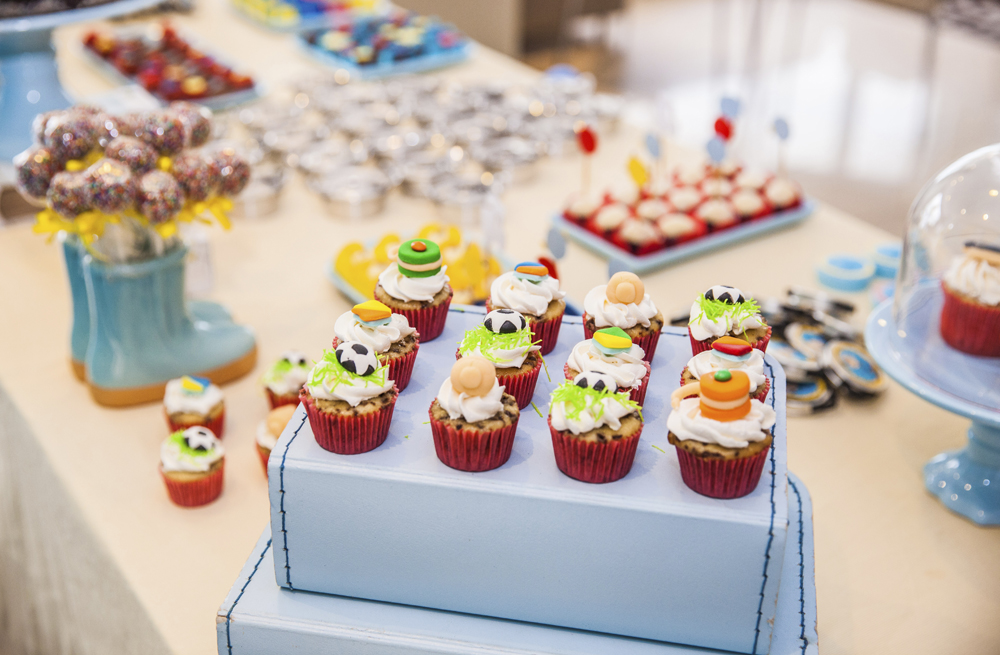 Vejam o charme desses cupcakes decorados da Just Cup e Cake. E o detalhe dessa grama verdinha? Todas as peças foram locadas na Fetes Locadora.